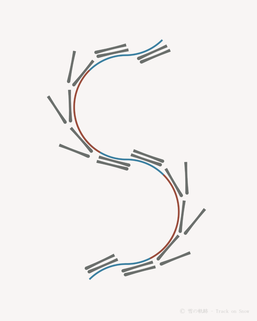 - 「ハの字で曲がって、ニの字(パラレル)に戻します」