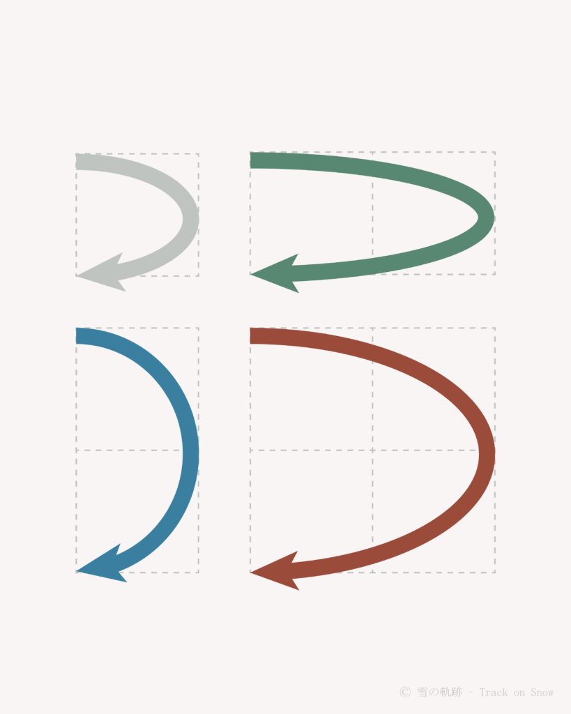 主にターンの長さや幅を示す際に用いられます。