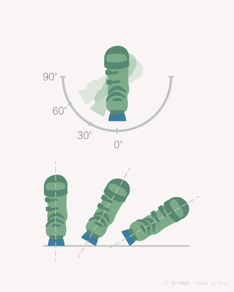 エッジが雪面に対してどの程度立っているか、その角度そのものを指す場合 - 操作や結果の見え方として