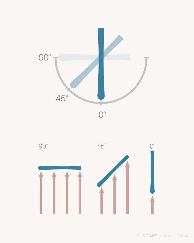 以下の記事で、迎え角とターンや制動との関係などについて深堀りしていきます。