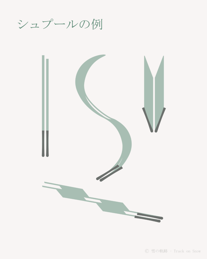 例:「芸術的なシュプール」「思い思いのシュプールを描く」